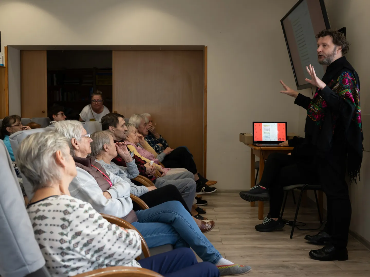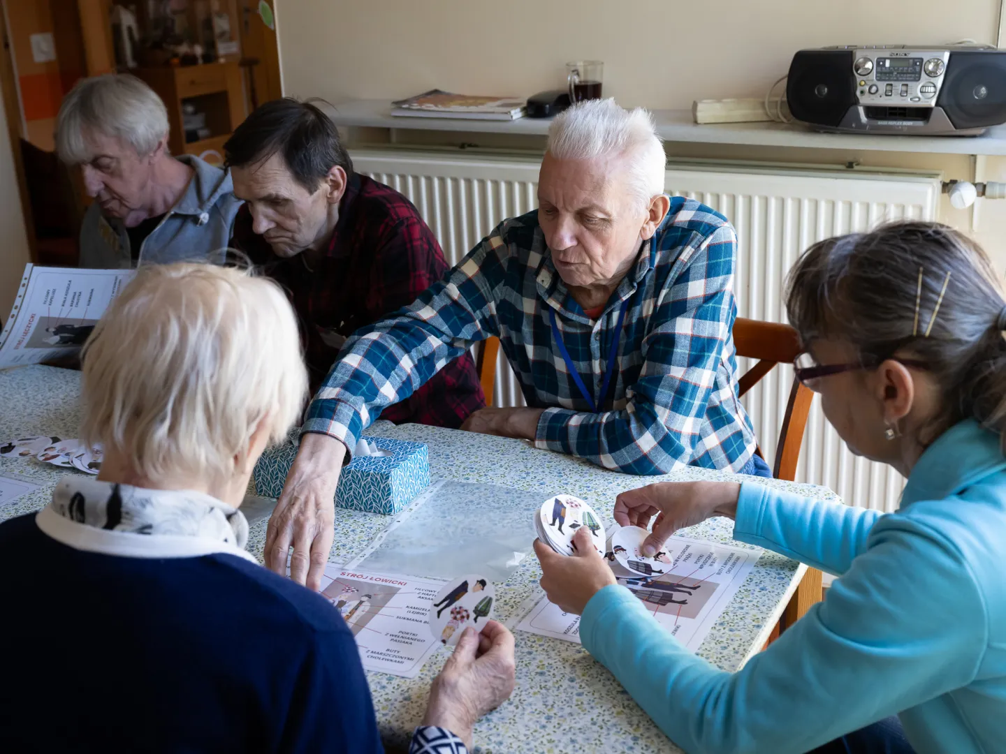 Za nami kolejne zajęcia z projektu "Muzeoterapia wsparciem dla osób z chorobami otępiennymi" dla seniorów ze Stowarzyszenia Kamienica 56 oraz Łódzkiego Towarzystwa Alzheimerowskiego. Tym razem rozmawialiśmy o strojach ludowych. Seniorzy wysłuchali krótkiego wykładu na ten temat. Później zagrali w grę dotyczącą stroju łowickiego, łęczyckiego, opoczyńskiego i sieradzkiego. Dotykali także mat obrazujących roślinne i zwierzęce pochodzenie materiałów, z których wykonywano odzież. Najwięcej pozytywnych emocji wzbudziły łowickie hafty.